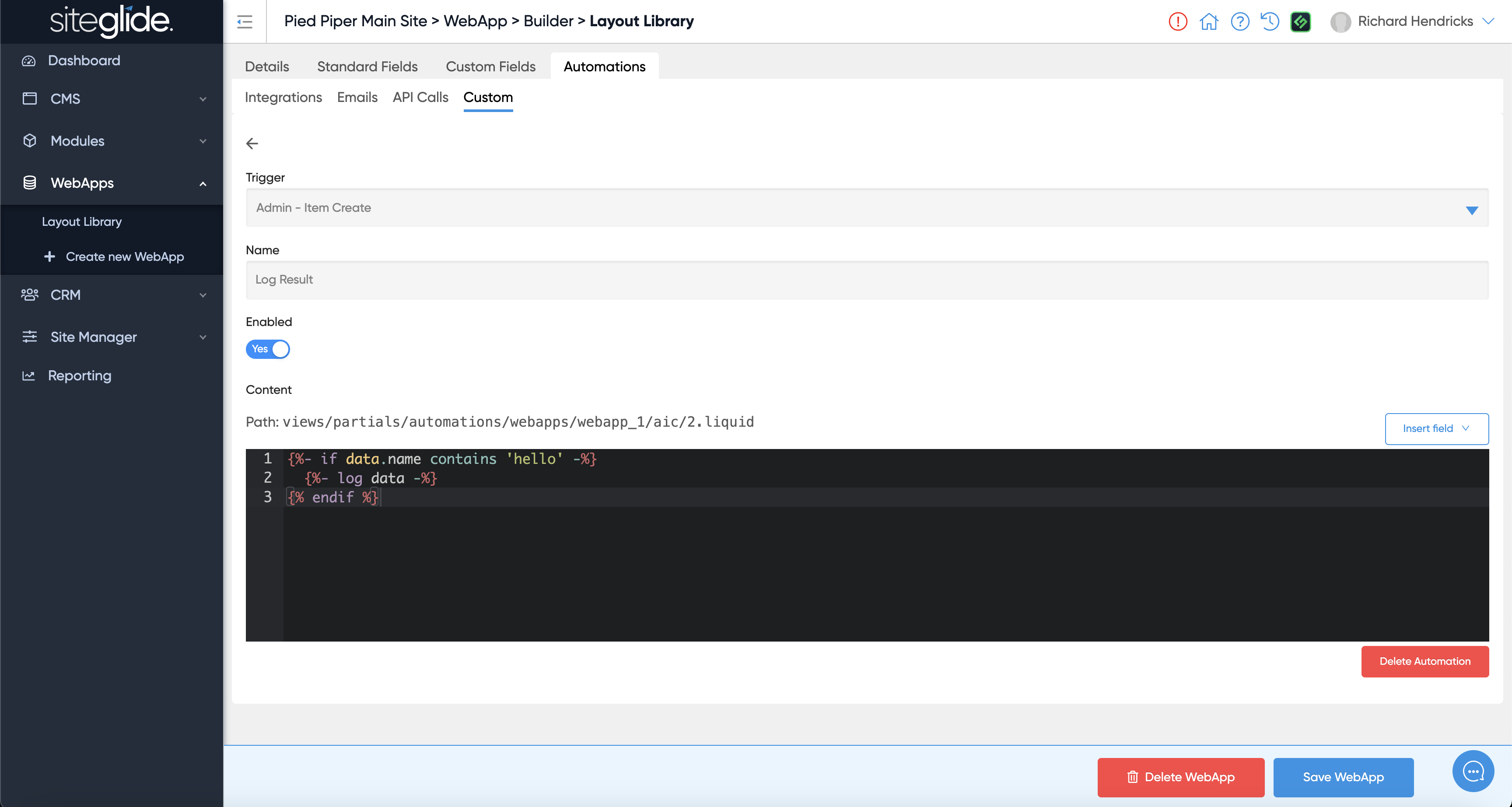 Once you've read how our introduction to Automations, you're ready to start creating your own. Below is an example of a custom action in Automations.