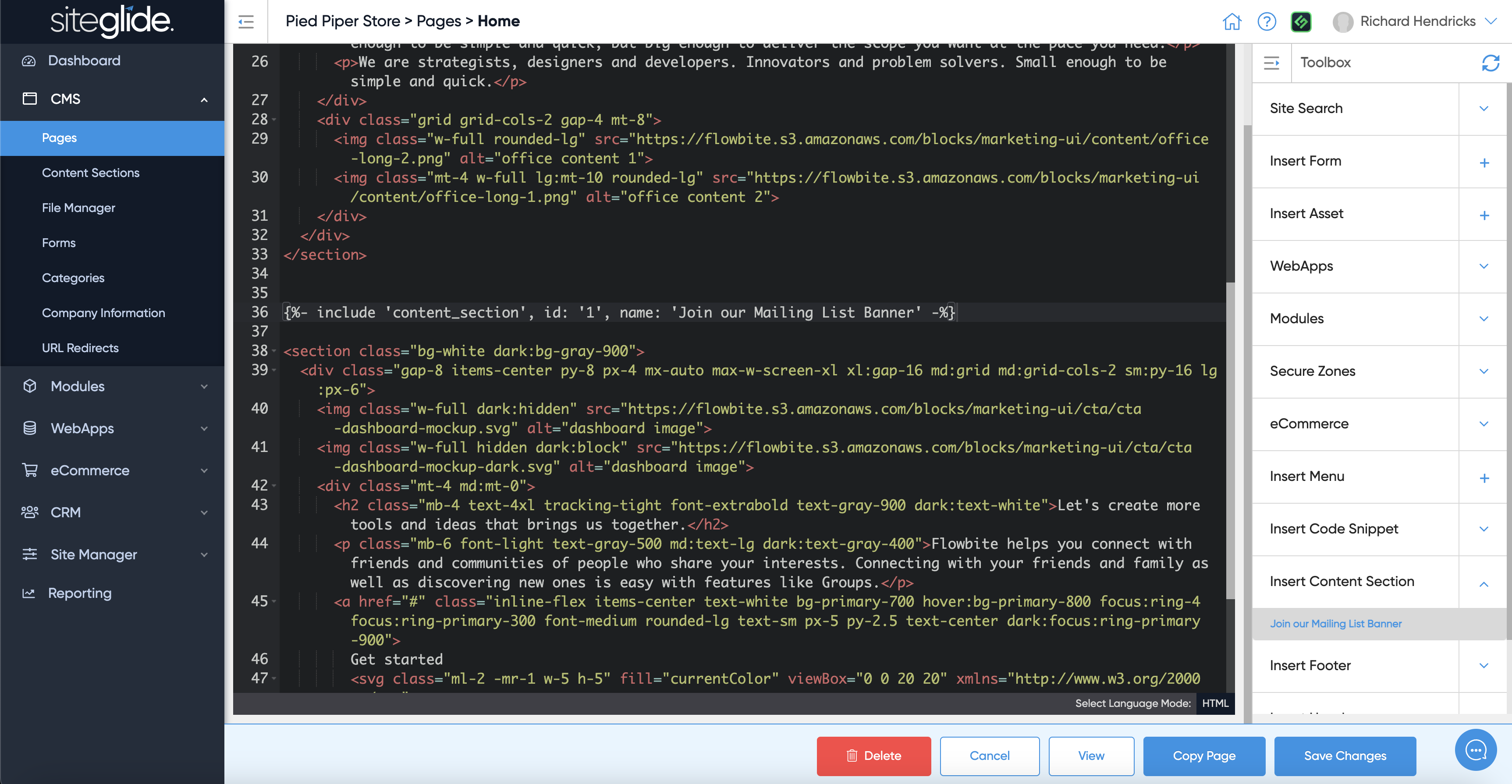 You can then easily insert the Content Section into any page using CLI or via Toolbox (code-view-and-toolbox.md):