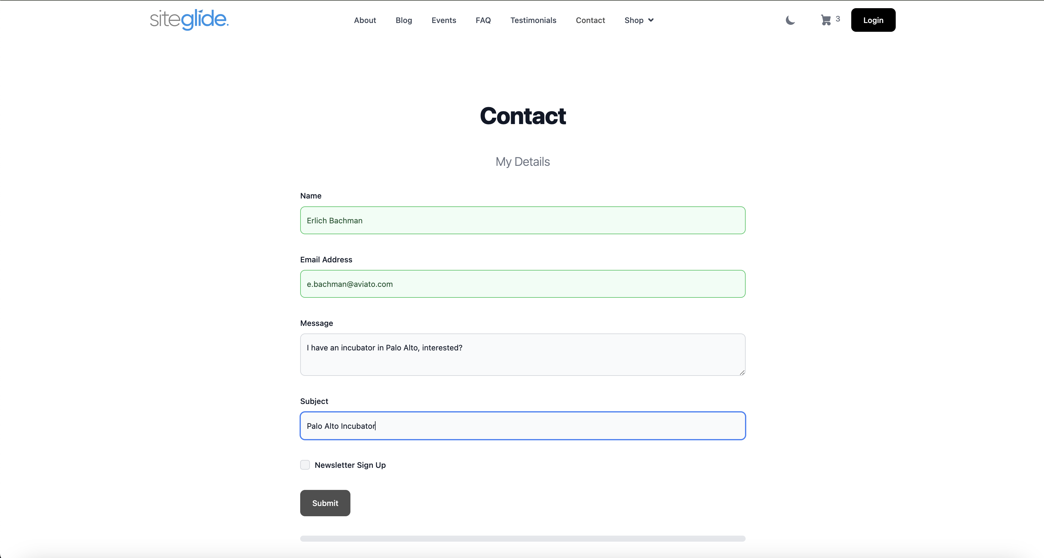 This Quickstart is a guided tour of the CRM feature within Siteglide. There is no setup required, it works out of the box but can be customised.