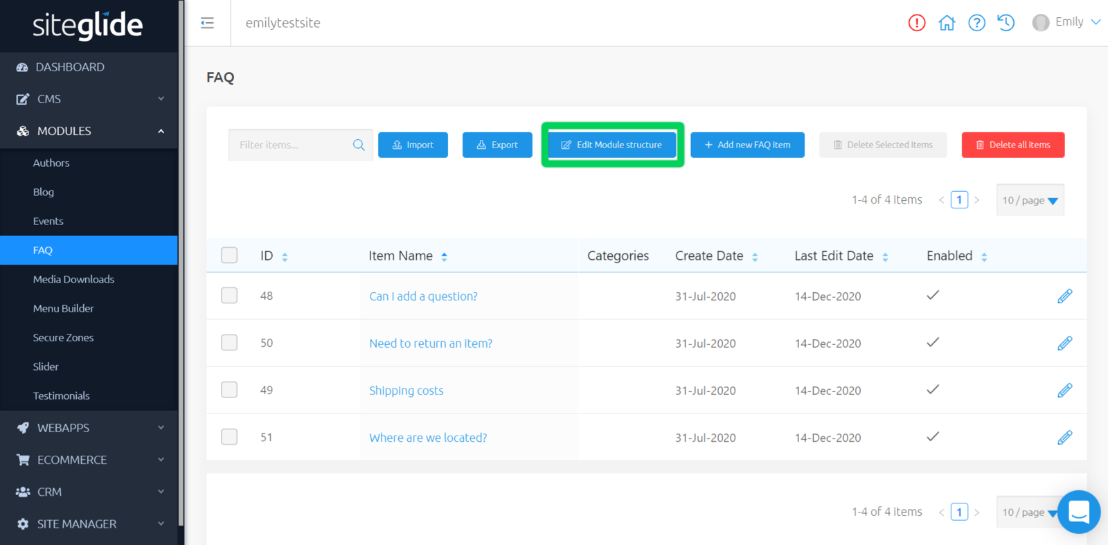 Custom Fields - Here you can add, edit and remove custom fields to use for your Module