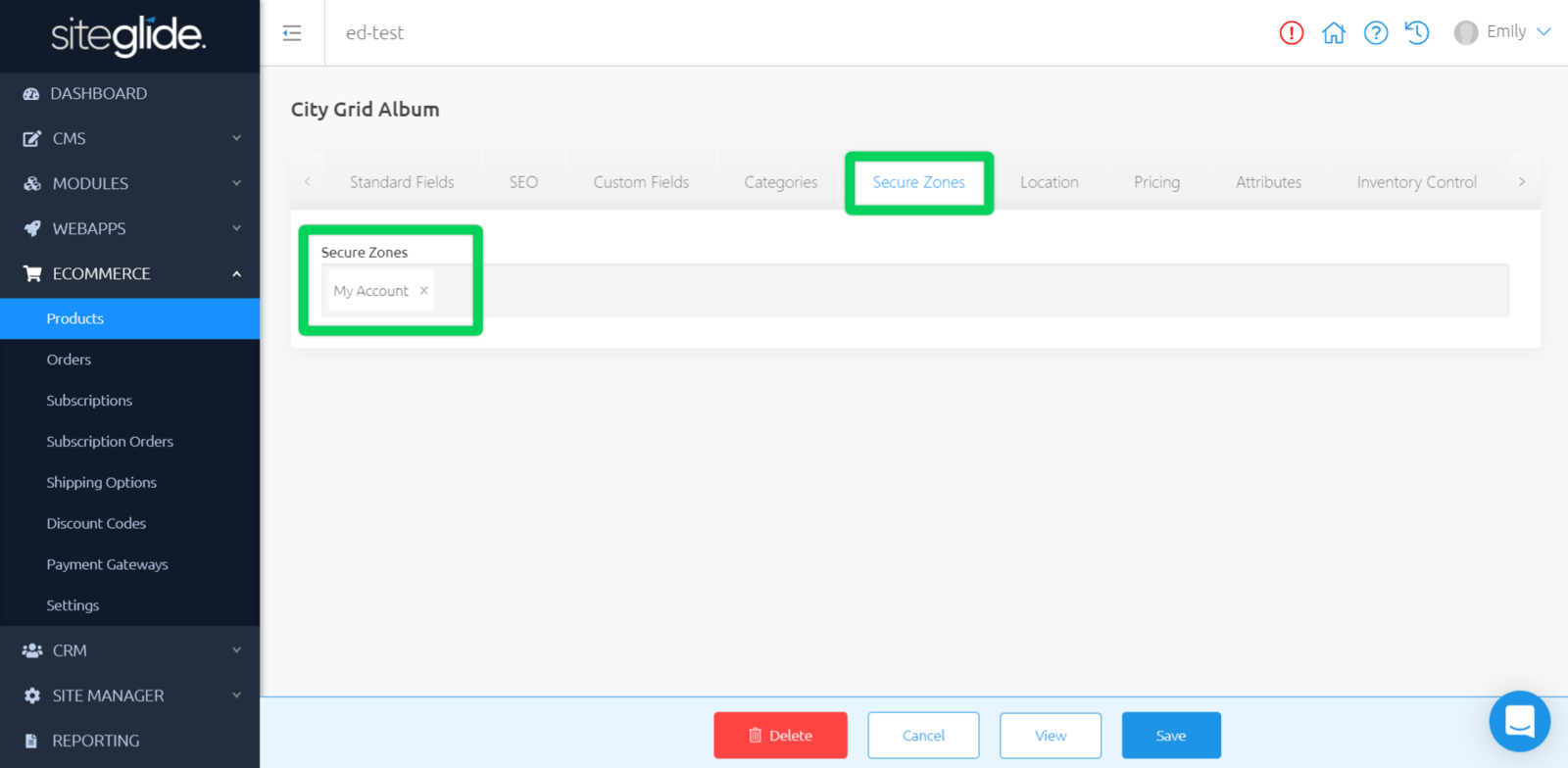 Whilst editing a Product, head to the "Secure Zones" tab.