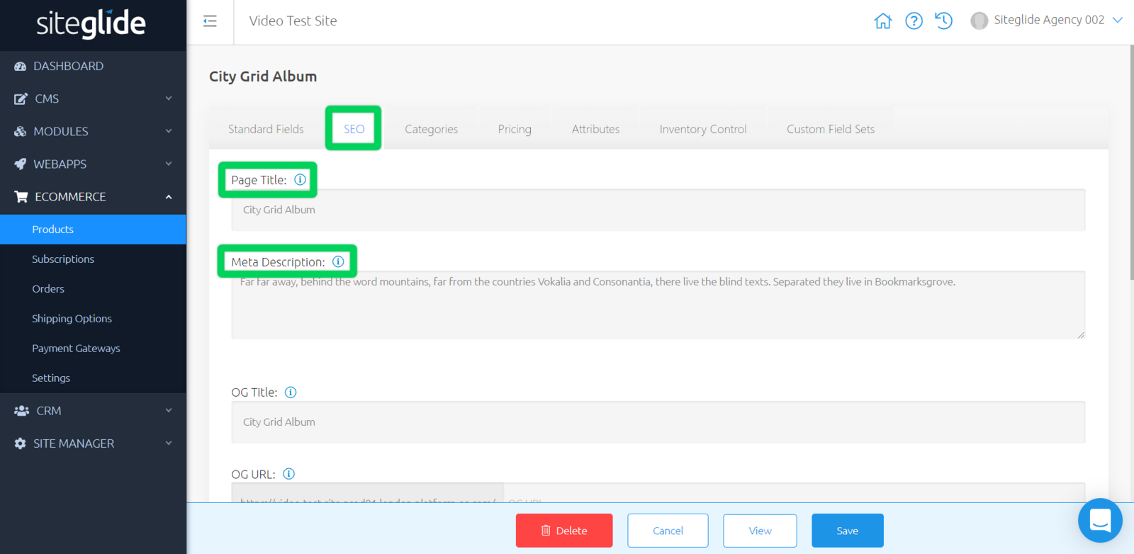 Meta Description - Describe your Product so that visitors know what it is about. (When typing in the description field, it will show you a countdown of advised character length.)