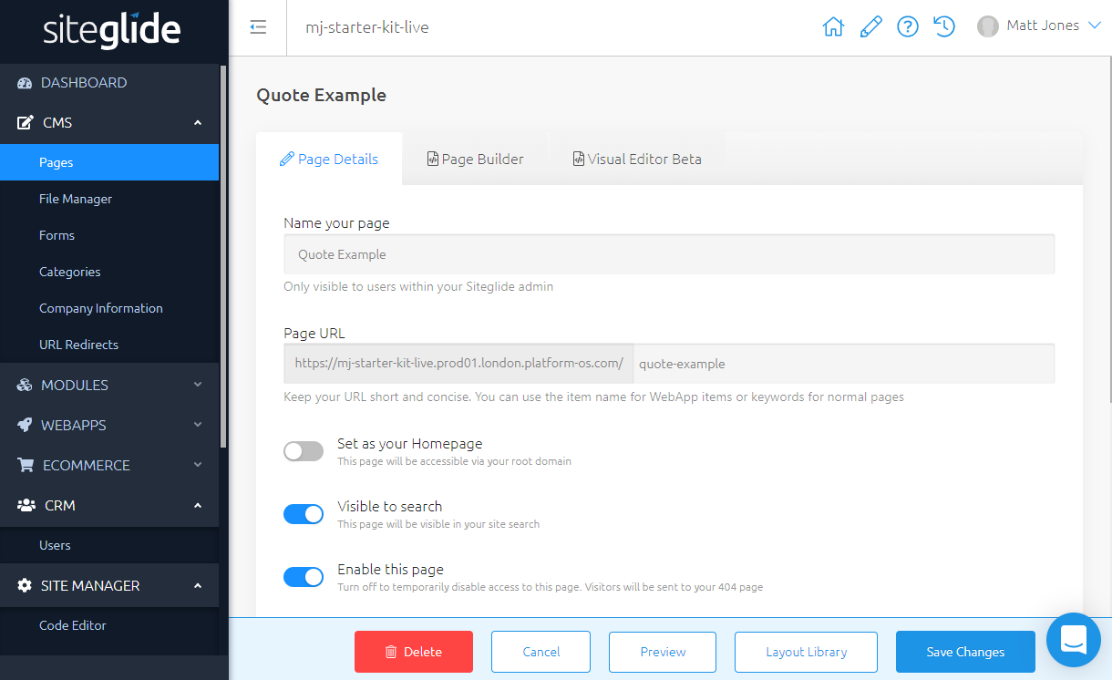 First, create your Page or select a Page you've created earlier.