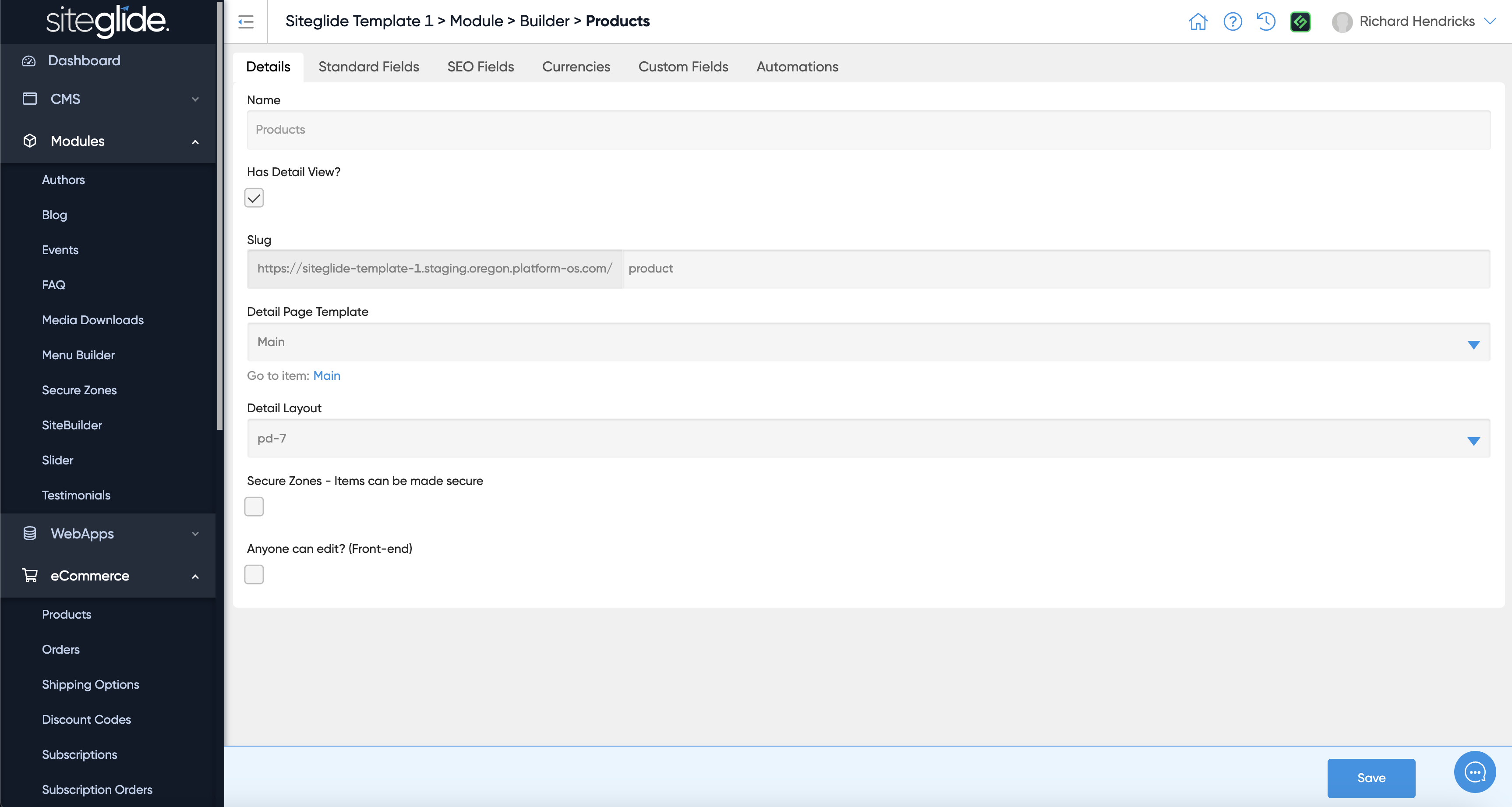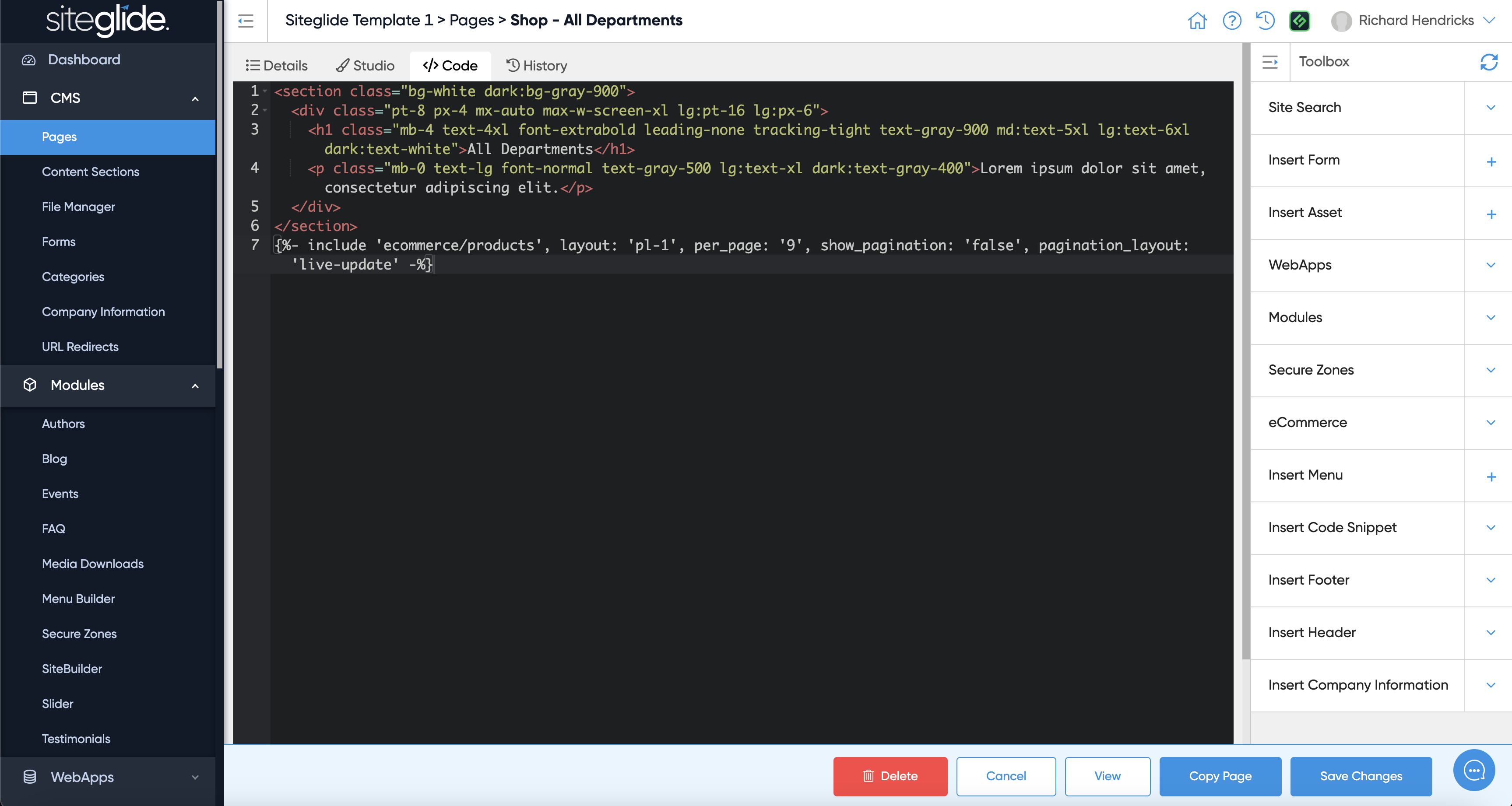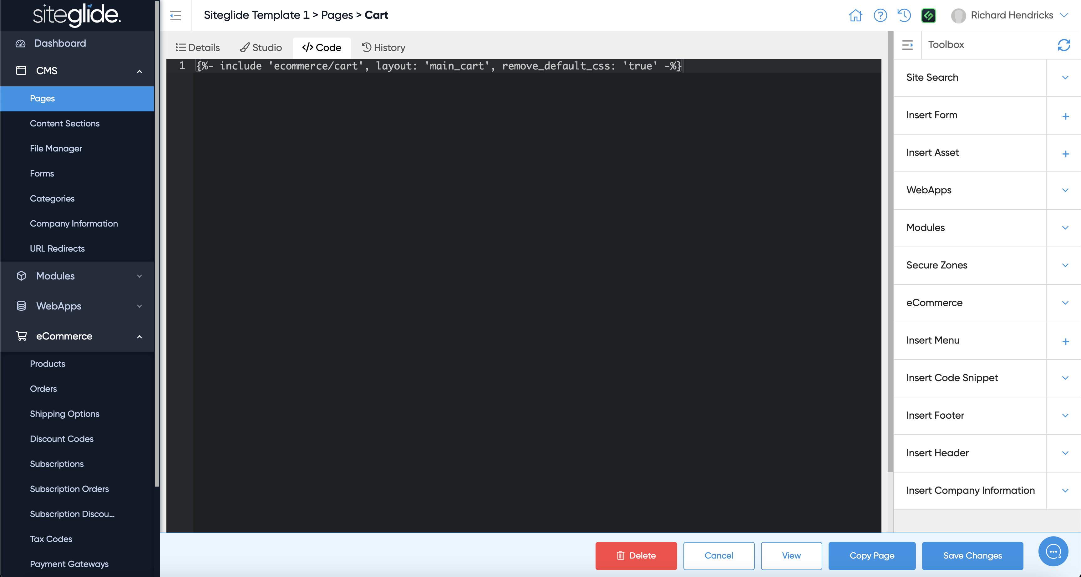 We strongly recommend starting from the template if you're not familiar with Siteglide or the eCommerce module in particular: