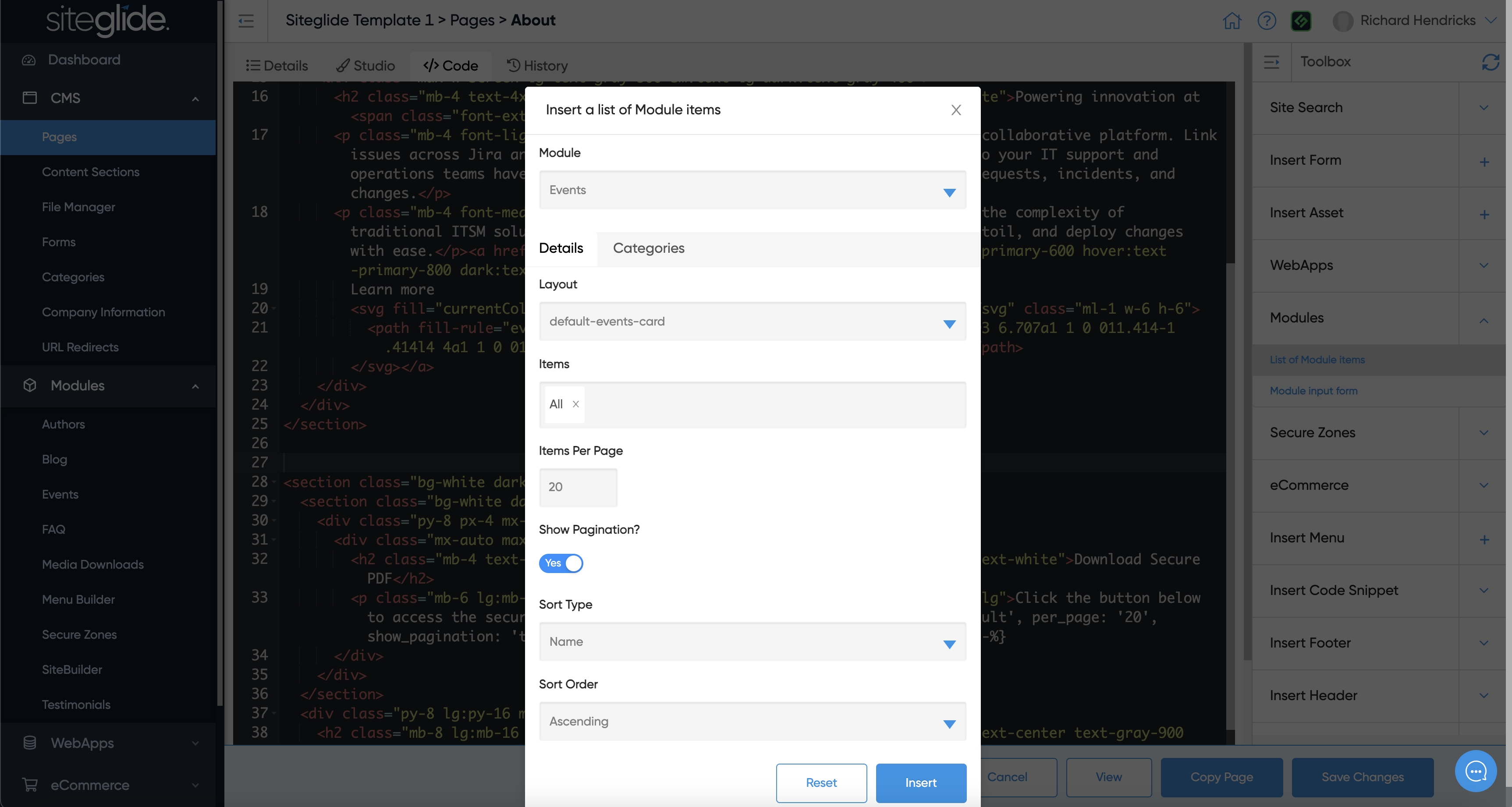 Your Events will work out of the box but Siteglide is all about flexibility and recognising each project is different. You have total control to customise the Layouts and how the Events Module works. We recommend looking at the SiteBuilder Events Layouts as a starting point as there might be existing Layouts that can save you a lot of time.