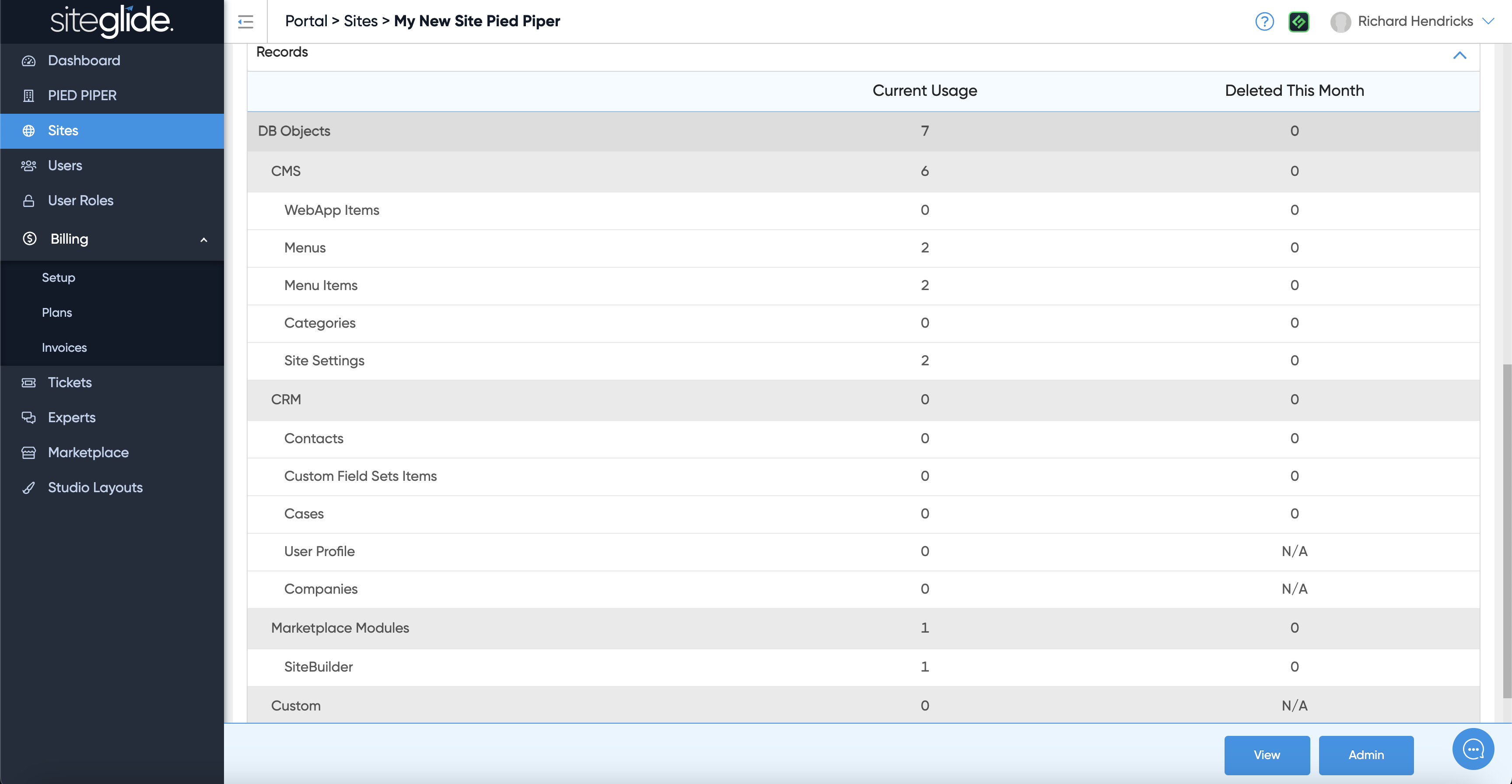 The Records Table shows a breakdown of all Records and how many have been deleted this month: