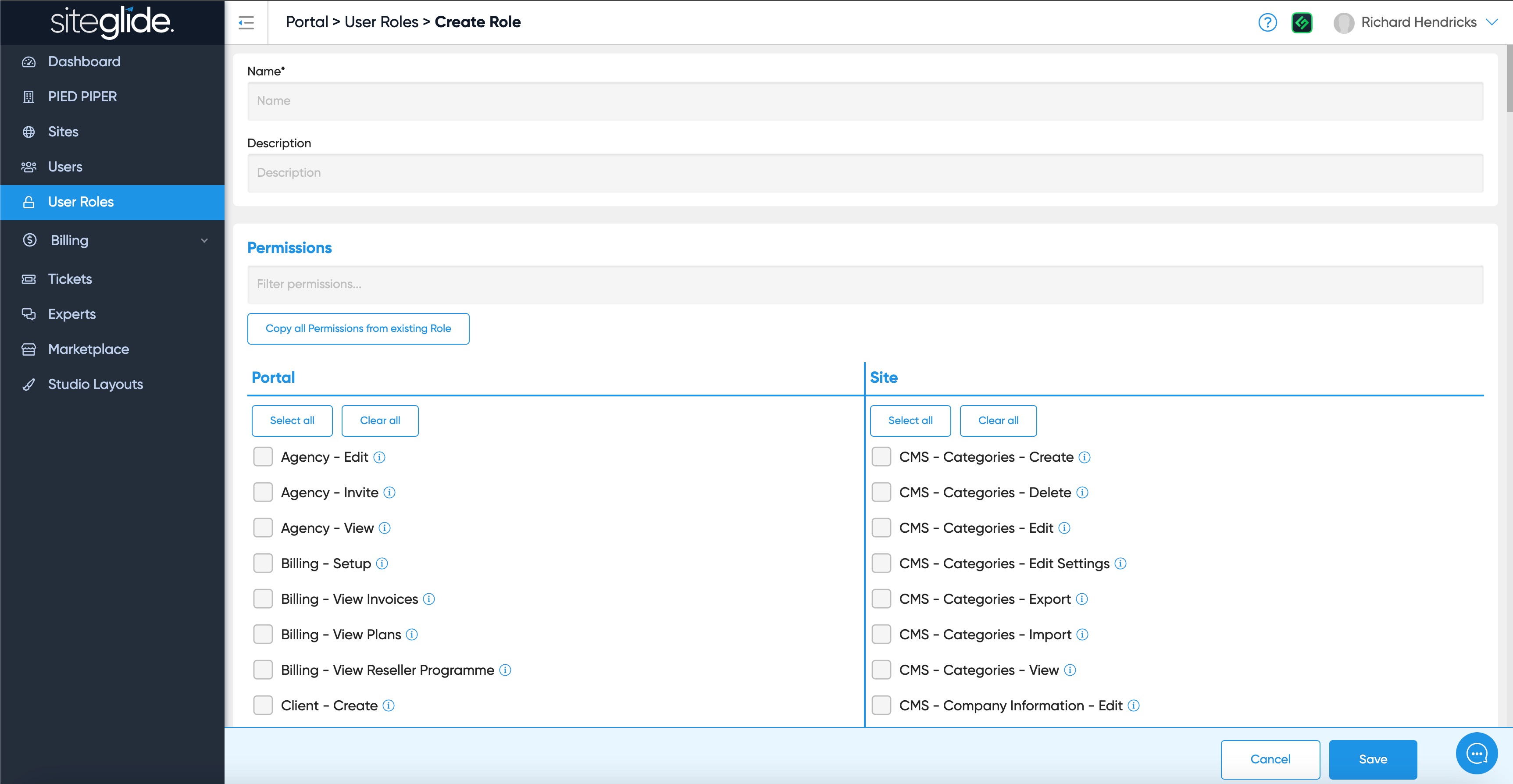 To create a New Role just give it a name and select the granular controls they have access to: