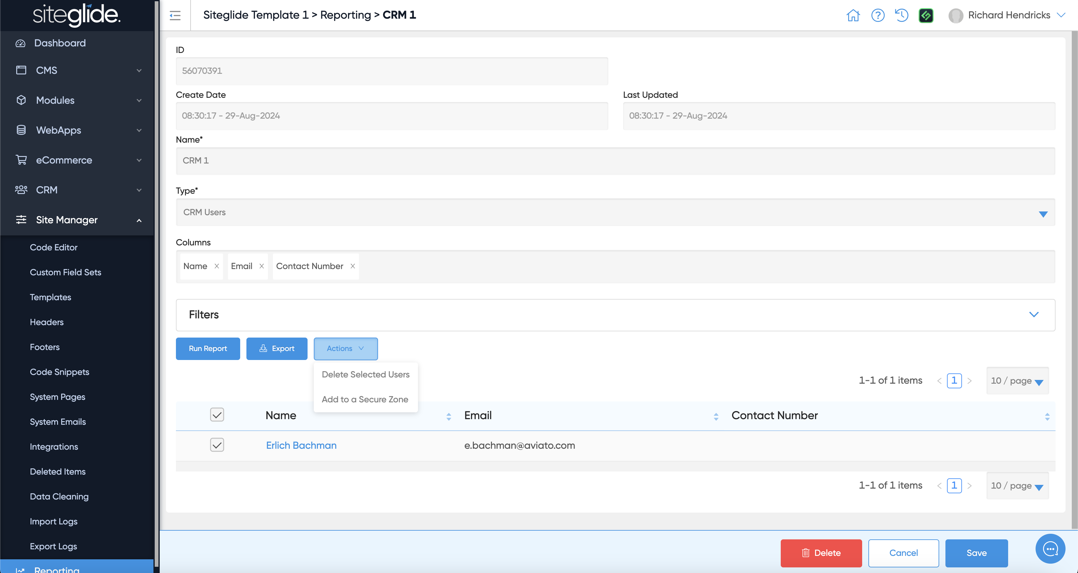 The Reporting tool allows you to build dynamic reports related to CRM usage and Form Cases. You can choose which Fields to include and filter the results. Once a Report is Saved you can go back to this at any time and see the results with live data.