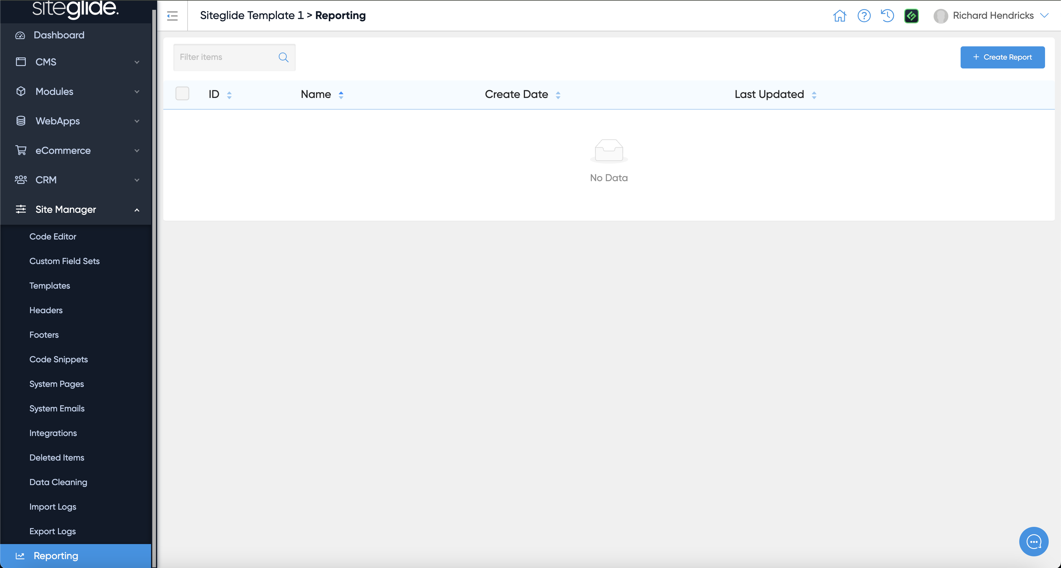 If you've not created any reports this area will be blank: