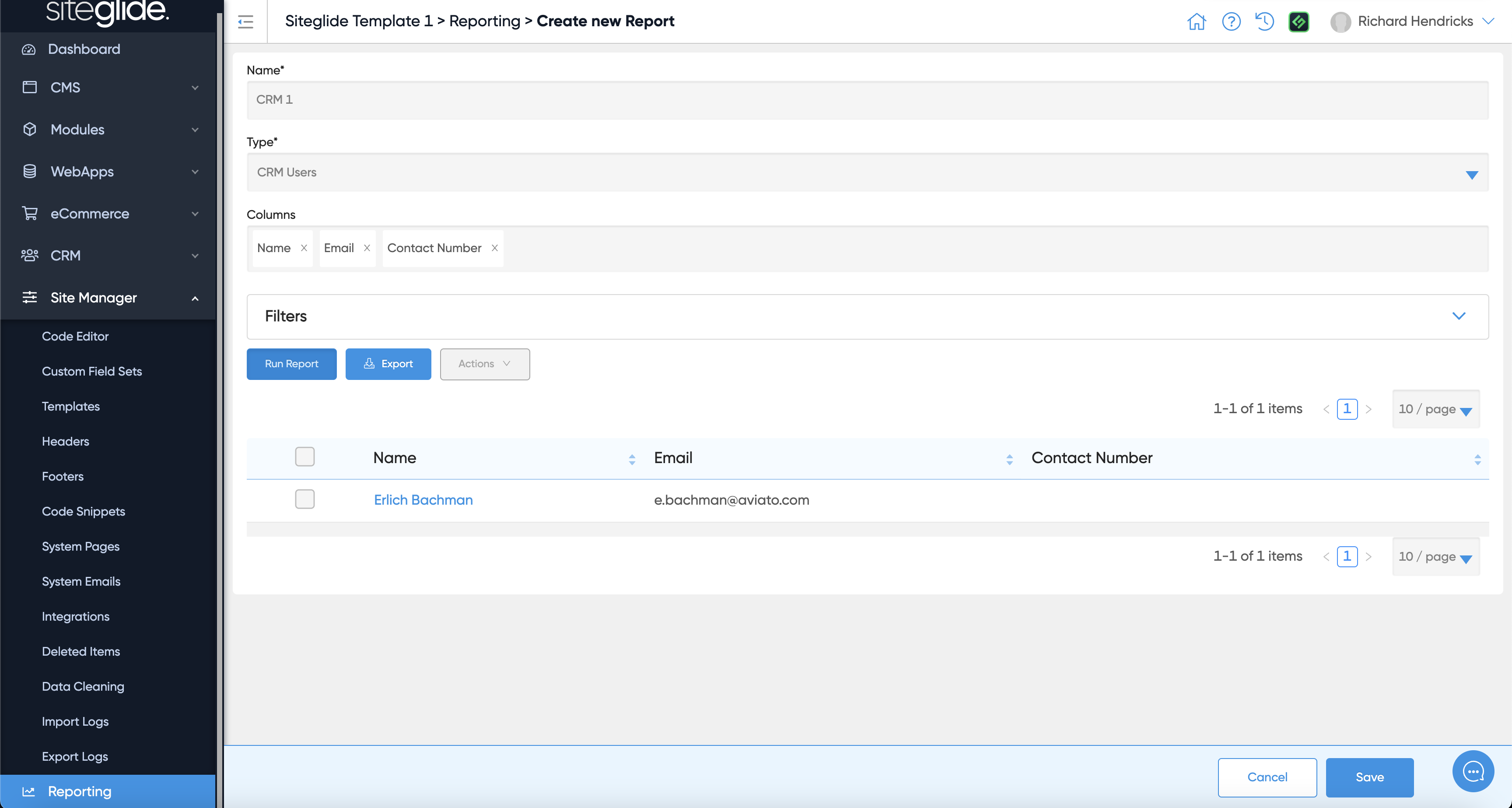You can then run the Report and see the results.