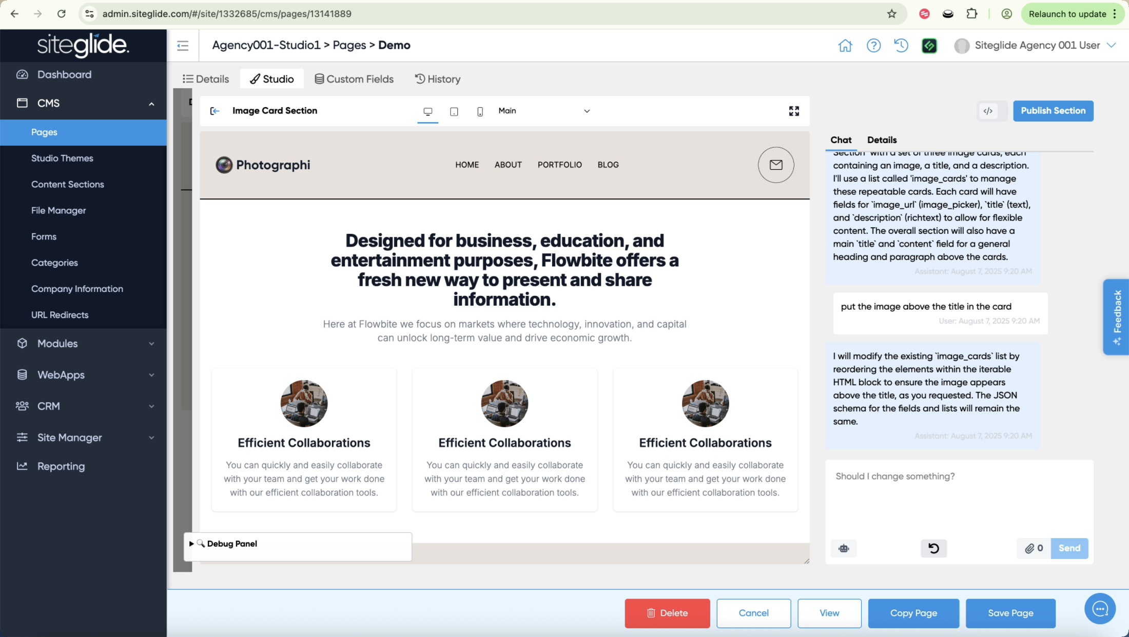 Creating websites with Siteglide has never been easier thanks to the release of Studio but also the new AI Section Builder.